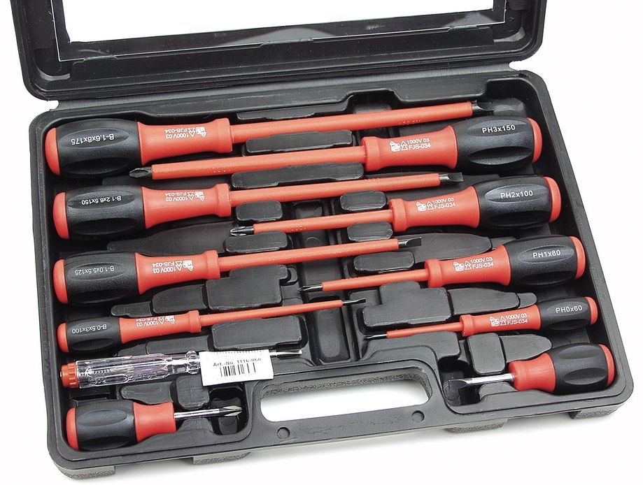 Набор отверток Mannesmann M11215 Количество предметов 11 Ручка пластик Диэлектрическое покрытие есть Материал стержня хром-ванадий Намагниченный наконечник есть Упаковка пластиковый кейс Вес 1.4 кг Особенности и функции Индикаторная отвертка в комплекте