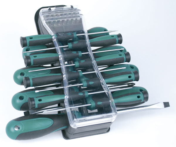Набор отверток Mannesmann M11132 Количество предметов 32 Ручка двухкомпонентная Материал стержня хром-ванадий Намагниченный наконечник есть Упаковка пластиковый кейс