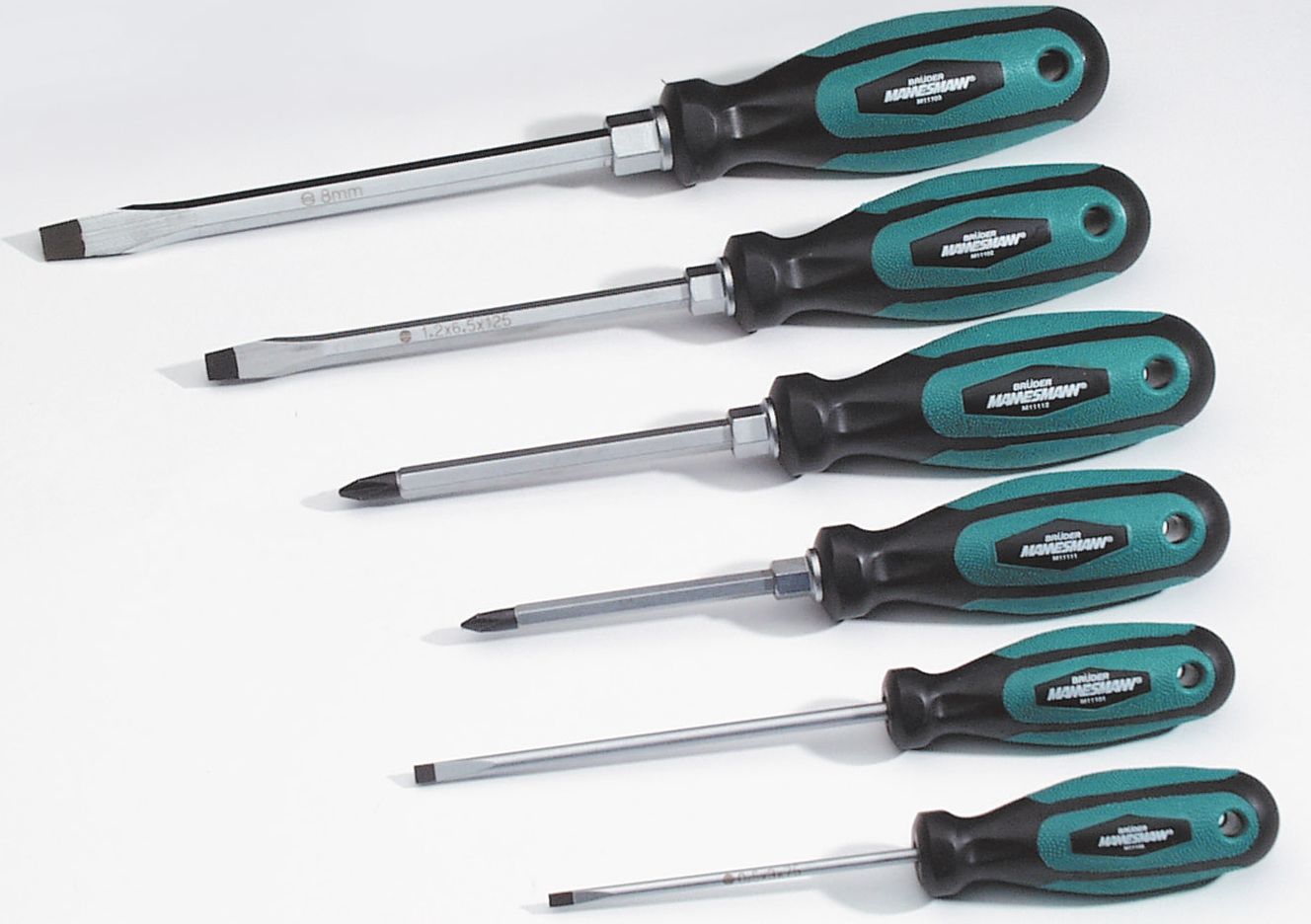 Набор отверток Mannesmann M11113-6 Количество предметов 6 Ручка двухкомпонентная Отверстие для подвеса есть Материал стержня хром-ванадий Шестигранный усилитель есть Упаковка картон Вес 0.607 кг