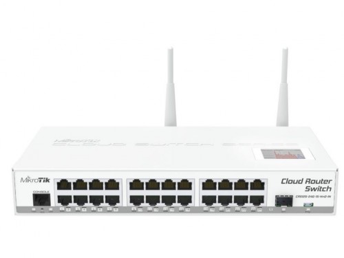 Mikrotik Cloud Router Switch 125-24G-1S-IN with Atheros AR9344 CPU, 128MB RAM, 24xGigabit LAN, 1xSFP, RouterOS L5, LCD panel, desktop case, PSU, CRS125-24G-1S-IN