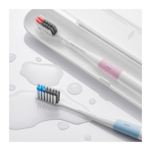 Xiaomi Toothbrush DR BEI + travel box Зубная щетка Xiaomi Doctor B – твоя любимая зубная щетка Выбирай всё самое лучшее для своей семьи! Это правило актуально и тогда, когда речь идёт о выборе зубной щетки. Останови свой выбор на зубной щетке Xiaomi Doctor B и они гарантировано станут твоими любимыми! Сделай выбор в ее пользу, потому что она полезная, всегда необходимая, имеет антибактериальное покрытие и обеспечивает суперэфективную чистку зубов. А какую щетку выберешь ты? Синюю, розовую, оранжевую или зелёную? Или берёшь все – для всей семьи? Компания Xiaomi постоянно расширяет набор профессиональных девайсов, которые постоянно следят за Вашим здоровьем и безопасностью. Анализировать наши ежедневные привычки и менять их в лучшую сторону — это профиль компании. Даже что касается таких мелочей, как, например, чистка зубов. Зубные щетки Doctor·Bрассчитаны на использование в семье, поскольку каждая щетка окрашена в свой цвет и имеет индивидуальный футляр. Футляр будет очень кстати, если Вы решите взять щетку с собой в путешествие. Стоматологи рекомендуют менять зубные щетки каждые 3 месяца, соответственно если вы холостяк, для каждого времени года можно подобрать свой цвет зубной щетки из набораXiaomi DOCTOR·B Colors 4 шт.\ В составе щетки используются только качественные материалы: поверхность ручек произведена в Германии, а щетинки- в Японии. Ручка имеет антибактериальное покрытие с ионами серебра. На ручке каждой щетки есть резиновая вставка для ее надежной фиксации в специальном настенном держателе. Зубная щеткаDoctor·B может быть использована для чистки зубов по методу Басса(Bass method). При таком методе чистки головка зубной щетки располагается под углом 45° к оси зуба. В таком случае концы щетинок касаются и боковой поверхности зуба, и десневой бороздки. При движении щетки ее волокна очищают как промежутки между зубами, так и карман, между зубом и десной. Это способствует ускоренному удалению зубного налета и массажу десны. Метод чистки по Бассу является более сложным в выполнении, однако он очень эффективно очищает труднодоступные места между десной и зубом. Массаж десен позволяет укрепить их, улучшить кровоснабжение и обеспечить здоровье зубов. Все щетинки имеют очень тонкий кончик, который не травмирует десну. Центральный ряд щетинок имеет большую длину и большую жесткость, таким образом при чистке мягкие боковые щетинки не будут травмировать десну, а более жесткие центральные щетинки будут хорошо очищать шейку зуба, и зубной карман. Три вида щетинок для эффективного удаления зубного налета Концепция двухуровневого размещения нитей имеет три важных преимущества: Верхняя часть нитей состоит из эластичных спиральных нитей, выполненных из пластика марки Pedex. Они предназначены для эффективного удаления остатков пищи и зубного налета с межзубных промежутков. Средняя часть состоит из мягкихантибактериальныхугольныхнитей фирмы Toraу, которые проникают глубоко в области между зубами и эффективно очищают от зубного налета. Боковые белые щетинки сделаны из гладкого пластика японской фирмы Toraу. Они обеспечивает идеальную чистку боковой поверхности зуба, а также узких промежутков между коронкой зуба и десной. Эти щетинки содержат ионы серебра, обладающие бактерицидным эффектом. В головке зубной щетки щетинки закреплены с помощью прочных мельхиоровых нитей. В сравнен