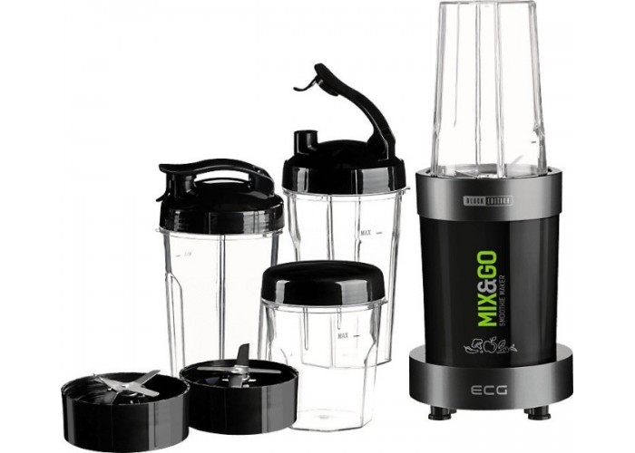 Блендеp ECG SM900Blk 4 контейнера 1x 900 / 2x 700 / 1x 500 мл Подхожу для приготовления свежих коктейлей, гладких напитков, продуктов питания и детского питания После смешивания закройте чашу с крышкой, и вы можете выпить с собой в любом месте Спортивный колпачок 3 + 2 стандартная крышкй бутылки Двигатель с высокой мощностью, потребляемая мощность 900 Вт, 20 000 об / мин, предохранитель перегрузки