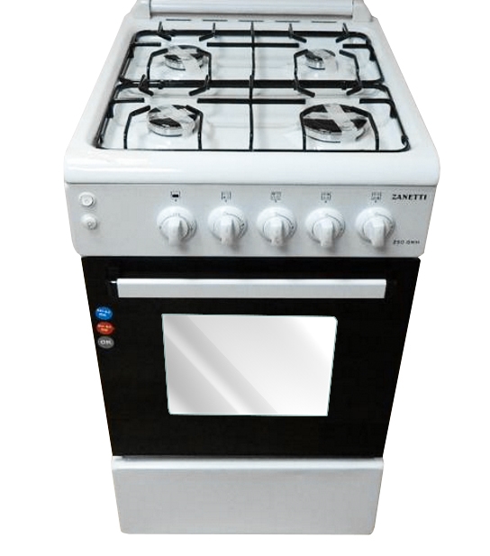 Плита комбинированная ZANETTI Z500 EWH Тип плиты: газовая Число газовых конфорок: 4 Решетки: эмалированные Противни: 2 Решетка: 1 Тип духовки: электрическая Цвет: белый Размеры (ШxГ): 50?55 см