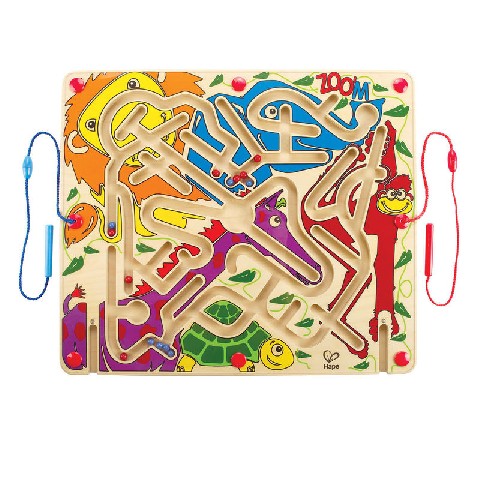 HAPE-ZOO'M Hape Деревянная игрушка "Магнитный лабиринт ZOO'M" Игрушка представляет собой лабиринт из разноцветных фигурок. Задача ребенка на первый взгляд очень проста: сделать так, что бы на каждой фигурке оказался шарик нужного цвета. Для того, чтобы шарики не потерялись, игрушка покрыта специальным толстым пластиковым стеклом. Оно достаточно прочное, что бы выдержать удар от падения. Благодаря своему дизайну они не оставят равнодушными ни детей, ни их родителей. Материал: Дерево Pазмер: 39.5 x 33.8 x 2.1 см Рекомендуемый возраст: 24 месяца +