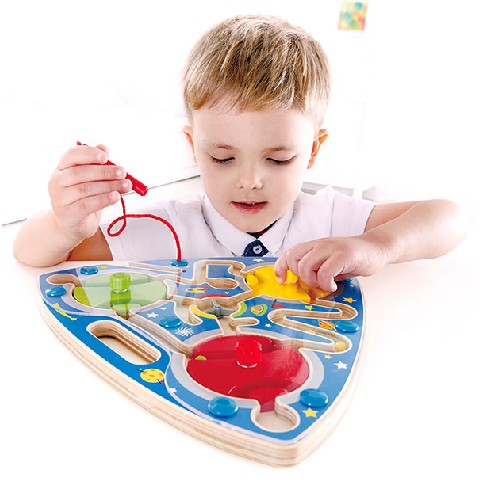 HAPE-MESMERIZING MAZE Hape Деревянная игрушка "Магнитный лабиринт" Лабиринт окрашен в яркие цвета, что обязательно привлечет внимание малыша! Внутри корпуса лабиринта есть много шариков раскрашенных в яркие цвета. Цель игры правильно передвигать шарики магнитной указкой по лабиринту. Пластиковая, прозрачная панель не даст шарикам выпасть наружу. Игрушка изготовлена из натурального дерева. Материал: Дерево Pазмер: 29.7 x 28.6 x 2.1 см Рекомендуемый возраст: 24 месяца +