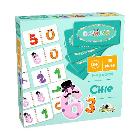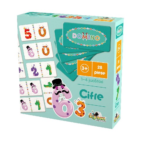 Domino-Cifre 2018 Noriel Игра "Домино-цифры" Mы призываем Вас и ваших друзей к игре веселой и интересной! Эта игра называется Домино-цифры! Cодержит 28 карт с иллюстрациями, которые необходимо внимательно изучить и сопоставить их правильно, выстраивая последовательность цифр и жизнерадостных монстров. Тот кто первым добавить все карты в ряд, тот и побеждает! Набор содержит: 28 карт с различными цифрами. Произведено в Румынии. Рекомендуемый возраст: 3 года +
