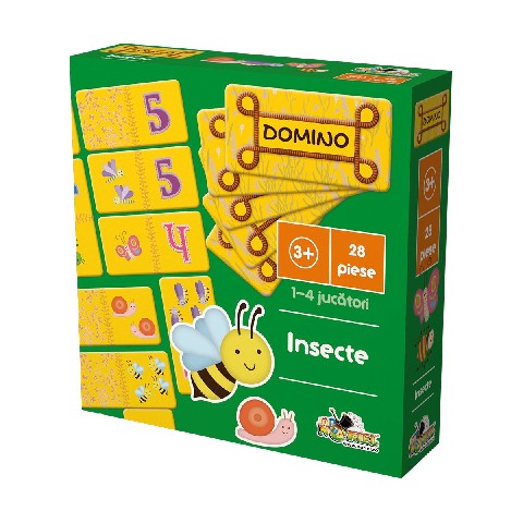 Domino-Insecte 2018 Noriel Настольная игра "Домино-насекомые" Эта игра называется Домино она содержит 28 карт с иллюстрациями, которые необходимо внимательно изучить и сопоставить их правильно, выстраивая последовательность цифр и жизнерадостных монстров! Тот кто первым добавит все карты в ряд, тот и побеждает! Набор содержит: 28 карт с различными насекомыми. Произведено в Румынии. Рекомендуемый возраст: 3 года +