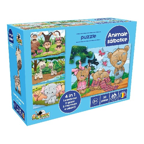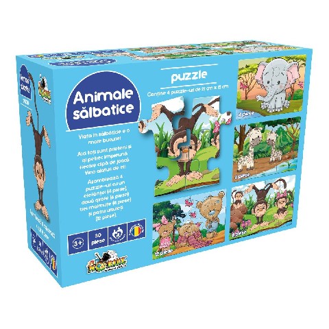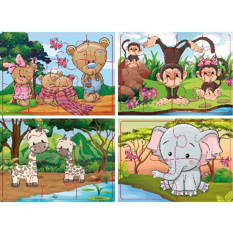 Noriel Puzzle Animale Salbatice Noriel Пазлы "Дикие животные" Соберите 4 пазла: слона (4 детали), двумя жирафами (6 деталей), тремя обезьянами (8 детали) и четырьмя медведями (12 деталей)! Жизнь в дикой природе - большая радость! Количество деталей: 30 Рекомендуемый возраст: 3 года +