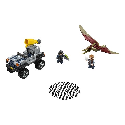Pteranodon Chase LEGO Jurassic World "Погоня за птеранодоном" Птеранодон вырвался на свободу и его нужно словить, попутно подобрав яйцо, чтобы с ним ничего не случилось. Как это будет происходить? Двое сотрудников парка Юрского периода выдвигаются на своей машине и быстро догонят динозавра. Они выпустят из оружия специальную сетку – главное точно прицелиться, чтобы попасть, и вот птеранодон уже лежит обездвиженный. Это все? Нет, осталось еще сделать ему успокаивающий укол, подобрать яйцо и спрятать его в автомобиль. Все готово? Вот теперь можно считать, что миссия выполнена! Всего 126 деталей. Детям от 6 лет до 12 лет.