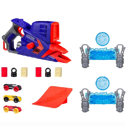 NER NITRO FLASHFURY CHAOS Hasbro Нерф Нитро "Флешфьюри" Встречайте Нерф Нитро Флешфьюри, который стреляет не пулями и даже не стрелами, как привыкли поклонники продукции Nerf, а гоночными машинками! Да-да, Вы все правильно поняли! Бластер выполняет функцию пускового устройства перед невероятно увлекательной гонкой. Как это работает? Достаточно просто поместить яркую раллийную машинку с подвижными колесами в обойму устройства и нажать на курок. Гоночный автомобиль вылетит с невероятной скоростью и помчится вперед, как только коснется ровной поверхности, либо выполнит невероятный трюк с несколькими оборотами в воздухе. А, чтобы игра стала еще более захватывающей и увлекательной, в наборе представлены различные аксессуары в виде препятствий и трамплина. Юный гонщик уже готов к головокружительным трюкам? В наборе: Бластер, Машинки – 3 шт., Препятствия – 6 шт., Мишени – 2 шт.,Трамплин. Рекомендуемый возраст: 5 лет