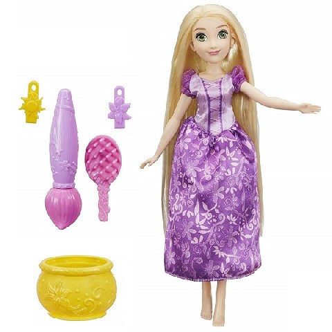 DPR STAMP AND STYLE RAPUNZEL Hasbro Disney Princess Кукла Рапунцель "Магия волос" Только взгляните на эту красавицу! У Рапунцель большие зелёные глаза, светлая кожа и длинные мягкие волосы, которые можно расчесывать. Она одета в сиреневое платье с рукавами-фонариками и длинной юбкой. С такой замечательной куколкой можно разыгрывать сценки из мультфильма или придумывать собственные приключения. Но это еще не всё! Волосы Рапунцель волшебные: они меняют цвет на розовый при контакте с холодной водой. Просто наполните ёмкость из комплекта холодной водой и с помощью кисти нанесите узоры на волосы Рапунцель или раскрасьте отдельные пряди. Экспериментируйте с прическами, ведь это так весело! Состав набора: кукла Рапунцель; расчёска; 2 заколки;кисть; ёмкость для воды. Рекомендуемый возраст: от 3 лет