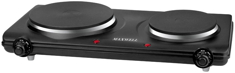 plita MAXWELL MW-1901 BK электрическая варочная панель эмалированная рабочая поверхность 2 конфорки духовка отсутствует ШхГхВ: 41x20x7 см механическое управлениеplita MAXWELL MW-1901 BK