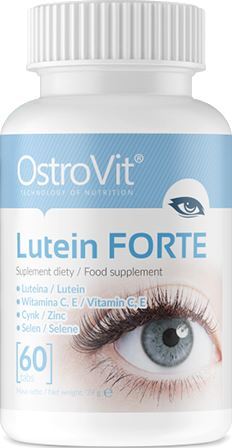 Ostrovit LUTEIN FORTE 60 таблеток OstroVit Lutein Forte – витаминно-минеральный комплекс для здоровья глаз и снижения риска возникновения и развития возрастных дегенеративных изменений сетчатки. Комбинированное средство, содержащее антиоксиданты, минералы и каротиноиды. Биологически активная добавка является дополнительным источником витаминов, необходимых для поддержания функционального состояния и оптимизации работы зрительного аппарата при повышенных зрительных нагрузках и прогрессировании возрастных изменений зрения. В организме человека лютеин не вырабатывается, попадая туда исключительно с пищей и витаминными добавками и накапливаясь в тканях. В наибольшей концентрации он содержится в органе зрения: в сетчатке глаза лютеина в 10 тысяч раз больше, чем в плазме крови. Этот пигмент исключительно важен для сохранения остроты зрения и здоровья глаз. Витамины Е и С – оказывают выраженное антиоксидантное действие, защищают ткани от негативного влияния перекисных соединений и свободных радикалов. Кроме того, витамины Е и С стимулируют регенеративные процессы, участвуют в энергетическом и других видах обмена, нормализуют функцию эпителия и поддерживают нормальное состояние слизистых оболочек, участвует в тканевом дыхании и других важнейших процессах метаболизма. Препятствует повышенной ломкости и проницаемости капилляров. Минералы (цинк и селен) – обладают выраженным антиоксидантным действием, поддерживают нормальную остроту зрения и цветовосприятие. Дефицит селена может приводить к потемнению хрусталика. Дополнительное получение лютеина – единственный способ увеличить его концентрацию в сыворотке крови и улучшить состояние сетчатки. Некоторые исследования утверждают, что лютеин также помогает при повышенном внутриглазном давлении и глаукомной оптической нейропатии. Это вещество предотвращает окислительное повреждение клеток глаза, уменьшает накопление особых пигментов, способствующих развитию возрастной дистрофии сетчатки глаза. Состав на порцию ( 1 таблетка ): Витамин С - 100 мг Цинк - 15 мг Лютеин - 12 мг Витамин Е - 10 мг Селен - 10 мкг Рекомендации по применению: Принимайте одну таблетку утром с пищей. Противопоказания: индивидуальная непереносимость компонентов продукта. Не предназначен для использования при беременности, лактации, а также лицами до 18 лет. Перед приемом препарата проконсультируйтесь с врачом. Источник интернет магазин спортивного питания: ProteinPlus