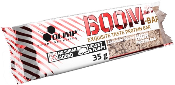 OLIMP BOOM bar 24 x 35 g Тип комплексный Вид сывороточный Форма выпуска батончик Упаковка коробка Вес 840 г Кол-во порций 24 шт Порция 35 г Кол-во белка в порции 11 г Калорийность порции 116 ккал Страна происхождения Польша