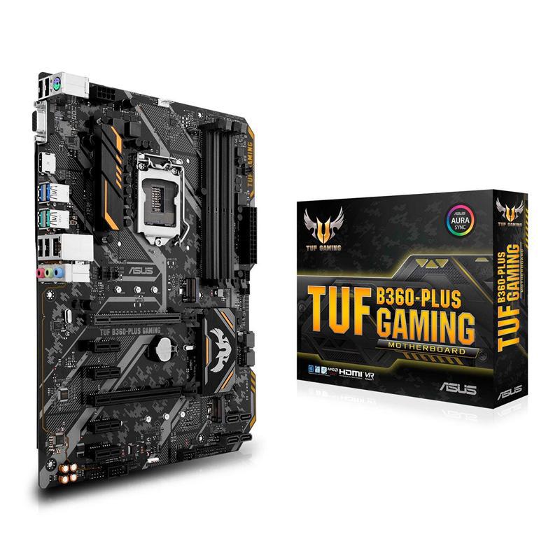 Материнская плата ASUS TUF B360-PLUS GAMING, Socket 1151, Intel® B360 (9th/8th Gen CPU), Dual 4xDDR4-2666, 2xPCIe X16, CPU Intel graphics, VGA, HDMI, 6xSATA3, 2xM.2, ALC887 HDA, GbE LAN, 2xUSB3.1 Gen 2, 4xUSB3.1, Aura Sync,TUF comp, 24/7, ATX материнская плата форм-фактора ATX сокет LGA1151 v2 чипсет Intel B360 4 слота DDR4 DIMM, 2133-2666 МГц разъемы SATA: 6 Гбит/с - 6
