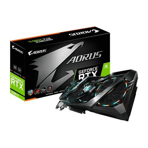 Видеокарта PCI-E Gigabyte GV-N208TAORUS X-11GC Бренд: Gigabyte Количество ядер CUDA: 4352 Максимальное разрешение: 7680 x 4320 Разрядность (бит): 352 bit Система охлаждения: Windforce 3X Тип: Gaming Форм-фактор: ATX Объём памяти: 11 GB