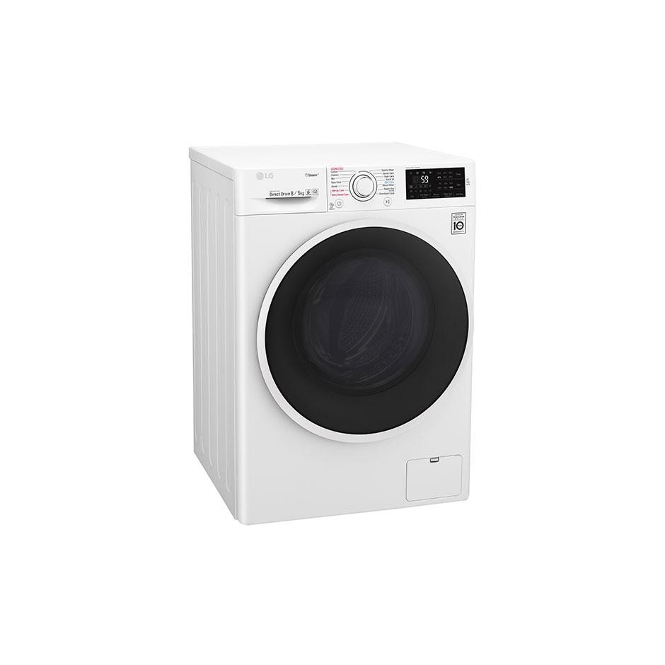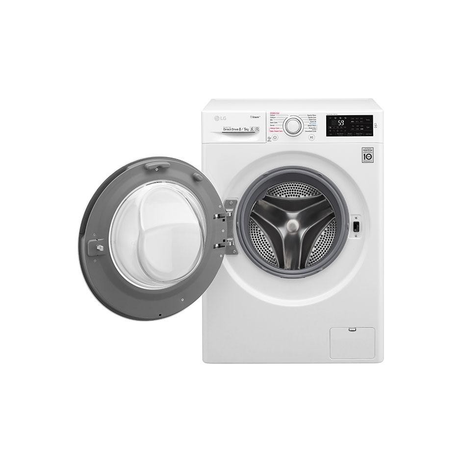 Cтирально-сушильная машина автоматическая LG F4J6TG0W Стирально-сушильная машина LG F4J6TG0W станет надежным помощником в домохозяйстве, отвечая за быструю и экономичную стирку практически любого белья. Вам предлагается качественная и привлекательная модель, отмеченная наличием ряда современных технологий компании LG. Загружайте до 8 кг белья на стирку и сушите одновременно до 5 кг вещей. Максимальная скорость отжима составляет 1400 об/мин. Несмотря на высокую производительность, машина работает весьма тихо - уровень шума не превышает 52 дБ во время стирки и 75 дБ при отжиме. Вам предлагается 14 программ, среди которых имеются программы для быстрой стирки и стирки спортивной одежды, а также режим обработки вещей паром. Можно воспользоваться функцией отсрочки старта, заблокировать прибор от детей и контролировать его работу с помощью смартфона и технологии Smart ThinQ. Производитель: LG Тип: Cтирально-сушильная машина автоматическая Способ установки: отдельностоящая Тип загрузки: фронтальная Ширина, см: 60 Высота, см: 85 Глубина, см: 56 Загрузка белья, кг: 8 (стирка)/5 (сушка) Максимальная скорость отжима, об/мин: 1400 Цвет: белый, люк - черный Класс энергопотребления: A Класс стирки: A Класс отжима: A Мотор с прямым приводом: есть Инверторный двигатель: есть Количество программ: 14 Удаленное управление (WiFi): нет