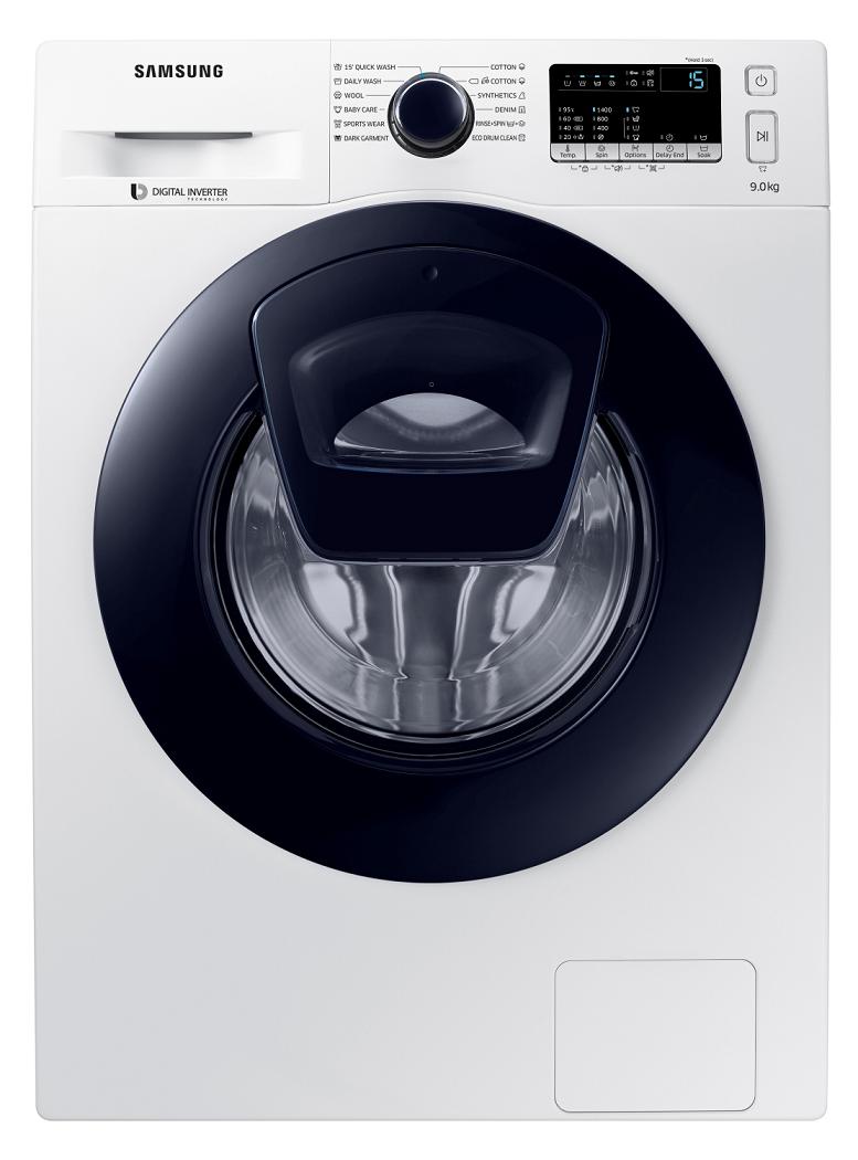Стиральная машина Samsung WW90K44305W/LE Стиральная машина Тип загрузки: фронтальный Макс.загрузка белья: 9 кг Макс.скорость отжима: 1400 об/мин Класс энергопотребления: А+++ Тип управления: электронное Кол-во программ: 12 Цвет корпуса: белый