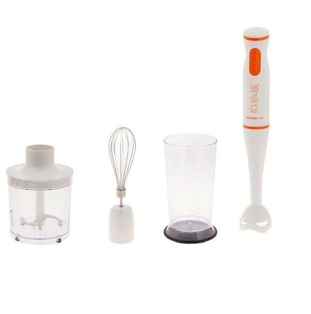 Блендер Polaris PHB 0528 manual White/Orange мощность 500 Вт механическое управление измельчитель мерный стакан корпус из пластика