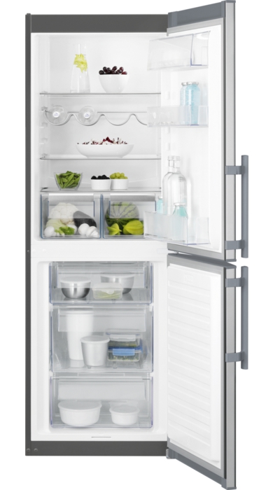 Холодильник Electrolux EN3201MOX Холодильник комби, нижнее распололожение морозильника Размораживание - автоматическое для холодильной камеры Ручное для морозильника Общий объем 303 л. Объем холодильной камеры 194 л Объем морозильной камеры 109 л