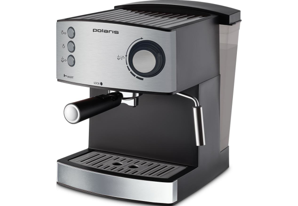 Кофеварка рожковая Polaris PCM1520AE для молотого кофе регулировка порции воды приготовление капучино одновременная раздача на 2 чашки металлический корпусКофеварка рожковая Polaris PCM1520AE