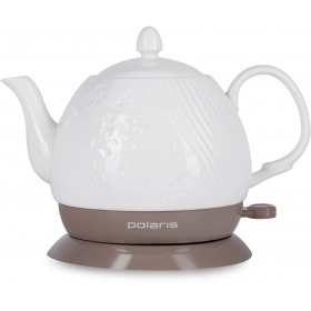 Электрочайник Polaris PWK1259CC Производитель Polaris Код производителя PWK 1259CC Тип чайник Объем 1.2 л Мощность 1200 Вт Тип нагревательного элемента закрытая спираль Материал корпуса керамика Безопасность блокировка включения без воды Индикация включения да Отсек для шнура да Съемная крышка да Вес 1.32 кг