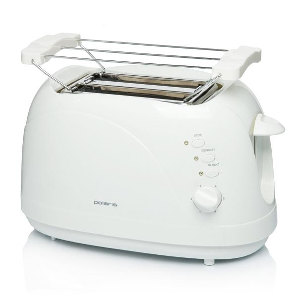 Тостер Polaris PET 0702L White на 2 тоста мощность 750 Вт механическое управление функция размораживания решетка для подогрева булочек, поддон для крошек
