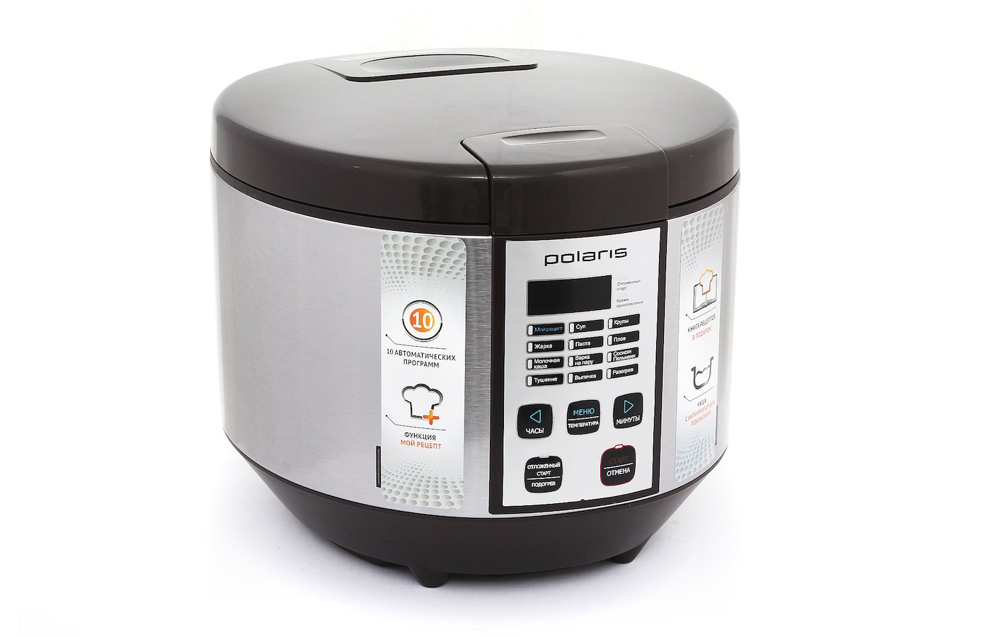 Мультиварка Polaris PMC0558AD мультиварка мультиповар, молочная каша, жарка, приготовление на пару, выпечка, тушение, плов, паста, крупа поддержание тепла, отложенный старт, регулировка времени приготовления мощность 700 Вт объем 5 л электронное управление