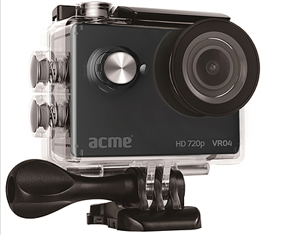 ACMEVR04CompactHDSports&Actioncamera,2”LCD(320x240pixels),Aperturef/2,25,Lensangle140°,Lens5mm,HD720p,5MPJPEG,Waterproofcase,Microphone,microUSB,900mAhLi-Ionbattery