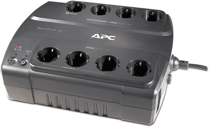 Резервный ИБП APC by Schneider Electric Back-UPS BE700G-RS 1-фазное входное напряжение выходная мощность 700 ВА / 405 Вт 3.7 мин работы при полной нагрузке 12.6 мин работы при половинной нагрузке выходных разъемов: 8 разъемов с питанием от батареи: 4 интерфейсы: Ethernet 10/100 время зарядки 16 ч