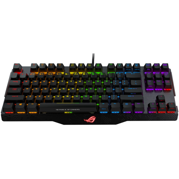 Игровая клавиатура Asus ROG Claymore Core, Mechanical, Aluminum, Macro, RGB, NKRO, Anti-Ghosting, USB , Cherry MX 50 million keystroke switches, Overclocking & Booting-up Hot Keys, Compact, Detachable cable, Onboard memory - https://www.asus.com/ROG-Repu проводная клавиатура интерфейс USB для настольного компьютера, игровая классическая конструкция, механическая клавиш: 87 размеры (ШxВxГ): 360x45x145 мм вес: 770 г