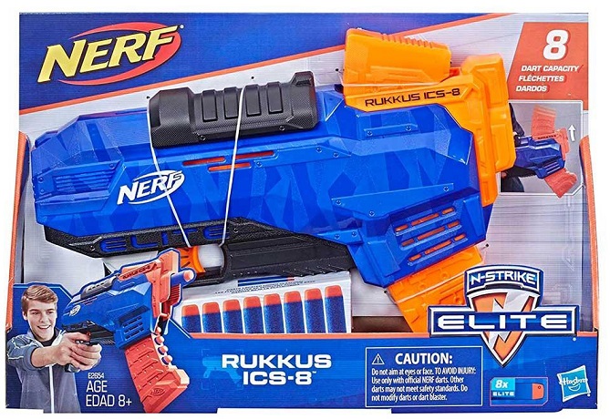 HASBRO NER ELITE RUKKUS ICS 8 Игрушечный бластер Hasbro Nerf Elite Rukkus ICS 8, несомненно, приведет в восторг юных бойцов, увлекающихся стрельбой и необычным фантастическим оружием. Представленная игрушка имеет компактные и эргономичные размеры, что, безусловно, порадует пользователей. Такая модель подойдет для развлечения ребятам, достигшим восьмилетнего возраста. Оружие имеет интересный необычный дизайн. Его отличает крепкая легкая конструкция, несъемный магазин для боеприпасов, а также мягкий пусковой механизм. Оформлен бластер в красочных и ярких оттенках синего и оранжевого цветов. В качестве заряда предусмотрены 8 стрел с мягкими наконечниками. Дальность полета стрелы из бластера Hasbro Nerf Elite Rukkus ICS 8 отмечается на 27 метрах. Производитель:Hasbro Тип:Бластер Возрастная группа:от 8 лет Тип боеприпасов:мягкие дротики Материал:пластик В комплекте:бластер, 8 стрел Элементы питания:нет Описание:Механический бластер – пистолет со встроенной изогнутой обоймой. Затвор-слайдер, находится сверху и аналогичен затвору бластера Delta Trooper. С функцией Slam Fire для высокой скорости стрельбы. Наиболее эффективен в ближнем бою и на средней дистанции. Третий бластер со встроенным магазином. Первым был Battlescout ICS-10, а вторым – Thunderhawk. Обратите внимание, что несмотря на компактность, Руккус требует усилий при стрельбе. Успех стрельбы будет зависить от ребенка и крепости его рук. 1 точка крепления ремня. Дальность стрельбы до 27 метров. Скорострельность до 2,5 стрел