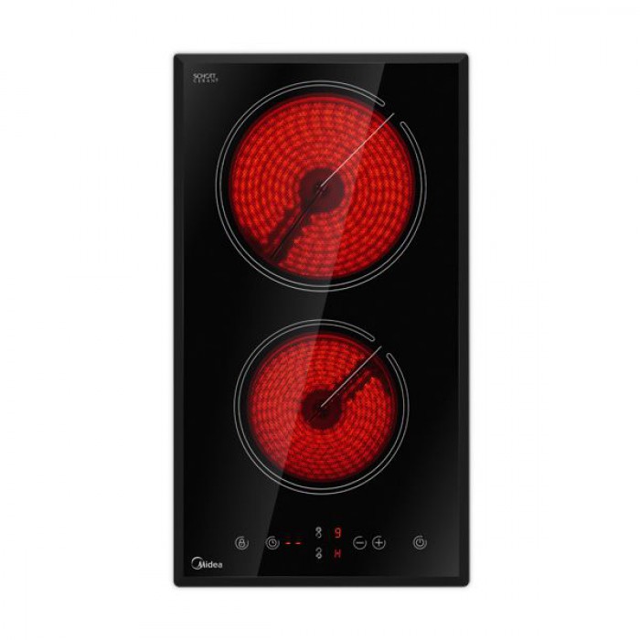 Варочная панель Midea MCH32130F электрическая варочная панель стеклокерамическая поверхность керамические конфорки переключатели сенсорные кнопочное управление защита от детей индикатор остаточного тепла независимая установка габариты (ШхГ) 28.8x52 см