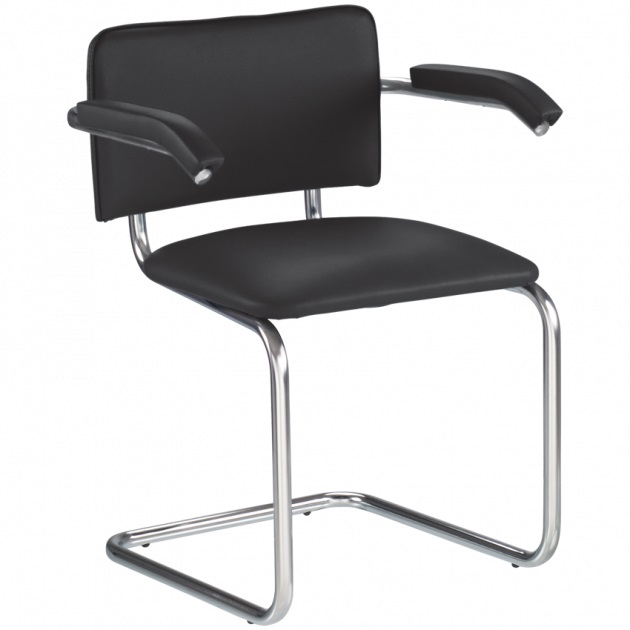 Стул Новый Стиль SYLWIA Arm chrome, V Офисный стул SYLWIA arm chrome имеет мягкие обитые сиденье и спинку. В основании модели сварной металлический каркас, который обеспечивает конструкции прочность. Стул SYLWIA arm chrome комплектуется подлокотниками с мягкими накладками. Хромированная рама и широкий выбор цветовой гаммы делают эту модель универсальной. Тип Стулья для посетителей Основание Простое (4 ножки) Особенности Подлокотники Цвет Черный Корпус Металлическая рама Обивка Искуственная кожа Размеры сиденья 47х43,5 см Высота кресла 79 см