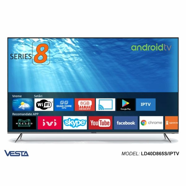 Телевизор Vesta LD 40 D 865 S/IPTV Ready Тип LED-телевизор IPTV READY Система AndroidTV 7.0 Google Play Market Диагональ 40" (100 cm) Разрешение FULL HD 1920x1080 Цифровой тюнер DVB-T/T2/C (Ci+) Видеообзор настройки бесплатных цифровых каналов USB -Video/Photo/Music