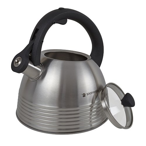 Чайник со свистком Polaris Classica-3L Высококачественная нержавеющая сталь 18/10. Клапан открывается кнопкой на ручке. Эргономичная бакелитовая ручка с покрытием Soft Touch не нагревается и не скользит. Стеклянная крышка. Сатинированная полировка. Эксклюзивный дизайн. Подходит для всех типов плит. Изделие Чайник Материал Нержавеющая сталь Ручки Эргономичная ручка с покрытием «Soft Touch» Подходит для всех типов плит Есть