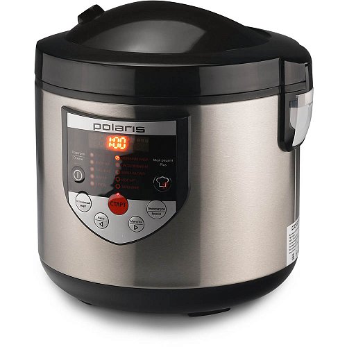 Мультиварка Polaris PMC 0548AD 5л Black Режимы работы: Мой рецепт Plus, Суп, Выпечка, Тушение, Жарка, Крупы, Молочная каша, Паста/Пельмени, Варка на пару, Йогурт, Запекание. Многофункциональный LED дисплей. Поддержание температуры 24 часа. Таймер отсрочки до 24 часов позволяет приготовить еду к назначенному времени. Сохранение программы при сбое электропитания – 2 часа. Отмена автоматического подогрева. Антипригарное покрытие чаши. Чашу можно мыть в посудомоечной машине. Объем 5 литров позволяет приготовить блюдо до 10 порций. Съемный шнур. Съемный паровой клапан. Аксессуары: - контейнер для варки на пару; - мерная чашка; - плоская ложка; - половник. Книга рецептов в подарок. Объем чаши, л 5 л Покрытие чаши Антипригарное Количество программ 10 Мощность, Вт 860 Вт