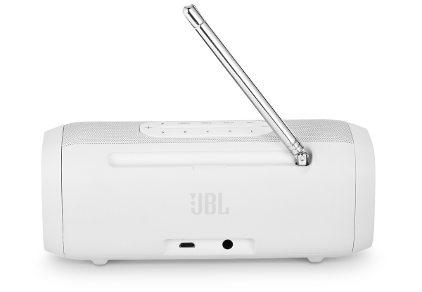 Портативная акустика JBL Tuner White Звук моно Суммарная мощность 5 Вт Питание от батарей Радиотюнер есть Диапазон воспроизводимых частот 85 - 20000 Гц Отношение сигнал/шум 80 дБ Количество полос AC 1 Широкополосный динамик 45 мм Дисплей есть Тип элементов питания свой собственный Время работы 8 ч Входы линейный (разъем mini jack) Интерфейсы Bluetooth