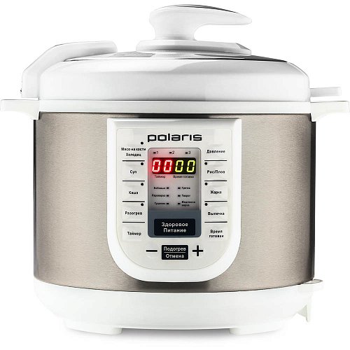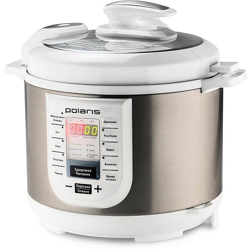 Мультиварка c давлением Polaris PPC 0305AD, white Polaris PPC 0305AD – это мультиварка - скороварка, которая станет Вашим незаменимым помощником на кухне! 14 автоматических программ (9 с давлением, 5 без давления) открывают широкие возможности для приготовления самых разных блюд. Мультиварка Polaris PPC 0305ad заменит на кухне еще и скороварку: Вы можете выбрать в меню как приготовление без давления, так и под давлением, что позволит готовить с экономией времени. Предусмотрены 3 уровня давления для готовки продуктов разной плотности и получения оптимальной степени готовности блюда по вашему вкусу. Меню «Здоровое питание» поможет в приготовлении полезных и здоровых блюд. Большая часть полезных веществ и витаминов сохранится, а их общая калорийность станет ниже, чем при использовании привычных методов готовки. Функция подогрева включается автоматически после завершения программы и сохраняет свежесть блюда в течение 24 часов. Если необходимо приготовить еду к определенному часу, просто установите старт прибора на нужное время – таймер отсрочки позволяет сделать это за целые сутки. Мультиварка Polaris PPC 0305AD под давлением имеет 6 уровней защиты и совершенно безопасна в эксплуатации. В комплекте Вы получаете следующие аксессуары: мерная чаша, столовая ложка, пароварка и книга рецептов в подарок. Объем чаши, л 5 л Покрытие чаши Антипригарное Количество программ 14 Мощность, Вт 900 Вт