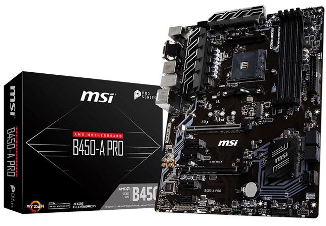 MSI B450-A PRO, Socket AM4, AMD B450, Dual 4xDDR4-3466, APU AMD graphics, DVI, HDMI, 2xPCIe X16, 6xSATA3, RAID, 1xM.2 slot, 4xPCIe X1, ALC892 7.1ch HDA, GbE LAN, 2xUSB3.1 Gen 2, 2xUSB3.1, RGB Mystic Light, ATX