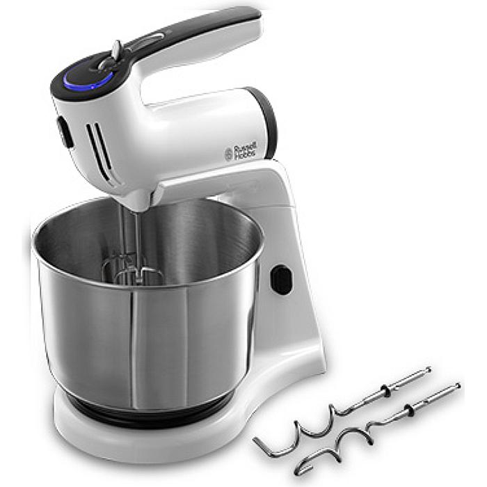 Миксер Russel Hobbs 21200-56/RH Современный дизайн, белая отделка корпуса; Мощность 300 Вт; 5 скоростей + режим "турбо"; Чаша из нержавеющей стали 3.5 литра с системой пассивного вращения при работе миксера; 1 пара стальных крюков; 1 пара стальных венчиков; Все аксессуары очень легко чистить и устанавливать; Пластиковое основание для установки миксера в стационарном положении; Миксер можно снять и использовать в ручном режиме; LED индикация.