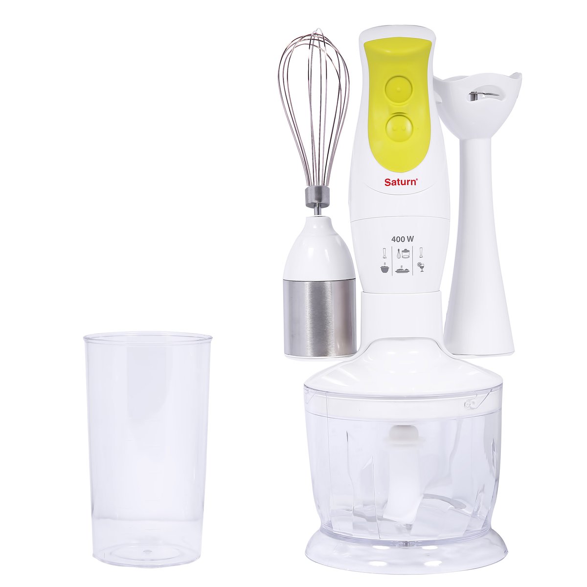 Блендер Saturn ST- FP9085 Компактные размеры и логически продуманная комплектация аксессуаров при хранении ручного блендера Saturn ST-FP9085 Nigel обеспечивает удобное хранение и максимально простое использование. Эргономичная форма рукоятки ручного блендера обеспечивает надежную фиксацию и отличную маневренность, а возможность погружения для выполнения определенных функций позволяет использовать любую посуду. Блендер Saturn ST-FP9085 Nigel отлично справится с измельчением, смешиванием, взбиванием и дроблением, а наличие в комплектации чоппера, венчика, мерного стакана и подставки держателя создадут дополнительное удобство при выполнении различных функций. Качественную работу блендера Saturn ST-FP9085 Nigel в одном из двух скоростных режимов обеспечивает потребляемая мощность в 400 Вт, а ножи из нержавеющей стали отличаются длительным и надежным сроком эксплуатации. Данный товар представлен в нескольких цветовых решениях. Наличие уточняйте у оператора. Тип погружной Мощность 400 Вт. Измельчитель есть Объем чаши 0.5 л Материал чаши пластик Количество скоростей 2 Венчик для взбивания есть Мерный стаканчик есть Материал корпуса пластик Материал погружной части пластик Цвет белый, голубой, желтый Производитель Saturn