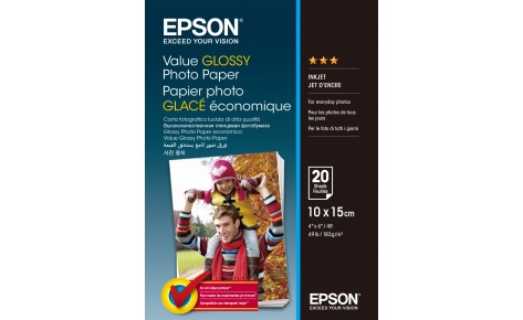 EPSON Value Glossy Photo Paper 10x15cm Применение Фотопечать Формат 10x15 см Листовой / рулонный Листовой Количество листов в упаковке 20 Тип поверхности глянцевая Плотность, г/м2 183 Толщина, мм 0.22 Возможность ламинирования Нет Размеры рулона / листа 102мм х 152мм Формат листа 10X15