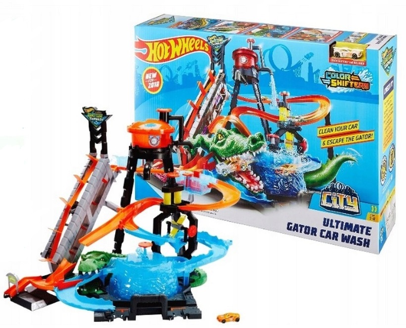 HW "Aligator" Spalatorie Auto HW Игровой набор "Автомойка" Этот набор подарит ребенку часы захватывающих игр с водой и невероятные возможности изменения цвета! Отправляйся на поиски приключений - поднимай машинки вверх специальным лифтом. Затем съезжай с башни рампой вниз, чтобы попасть в контейнер. О нет, машинка попала в безумный водоворот с холодной водой и неожиданно восстановила свой цвет. Жми на ручку и попробуй сбежать из водоворота. Но берегись, огромный аллигатор уже подстерегает тебя на выезде. Твоя задача состоит в том, чтоб не попасть в зубы гигантскому чудовищу. Если тебе это не удалось, запускай следующую машинку, чтобы помочь другу убежать. Это будет невероятно увлекательное приключение! Набор содержит: - лифт для подъема машинок на верхний уровень башни; - 2 контейнера для изменения цвета машинки; - огромный аллигатор, который подстерегает машинки в конце трека; - 1 машинка серии "Измени цвет" для быстрого старта. Рекомендуемый возраст: 5 лет +