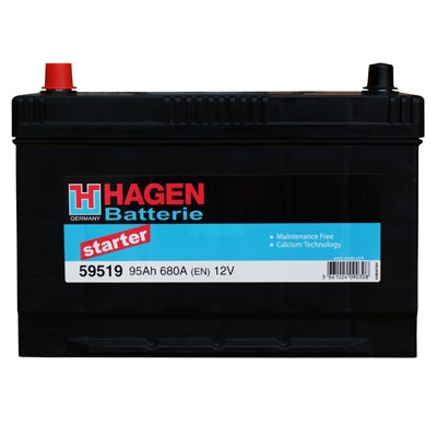 Аккумулятор Hagen 59519 95 A/h (л) Производитель: Hagen Модель: 59519 (95 Ah) Ампераж (А/ч):90-109 Ампераж модели (А/ч):95 Полярность:прямая
