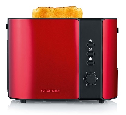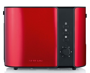 Тостер Severin AT 2217 Производитель Severin цвет красно-чёрный термоизоляционный корпус да разморозка да подогревание булок да регулировка времени запекания да автоматическое центрирование хлеба да мощность 800 В