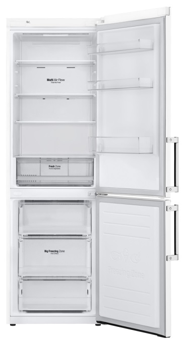 Холодильник LG GA-B459BQKL Быстрое и равномерное охлаждение Панель холодного воздуха в верхней части холодильника обеспечивает на 32%* более быстрое и равномерное охлаждение, чтобы ваши продукты сохранялись свежими еще дольше. Тихая работа Уровень шума в новых холодильниках LG DoorCooling+ 36 дБ, что на 25% ниже, чем в предыдущих моделях. Бесшумная и надежная работа, чтобы ничего не нарушало вашего спокойствия дома. Нулевой зазор С нулевым зазором холодильник LG можно ставить вплотную к стене и открывать дверь на 90°. Благодаря этому ящики выдвигаются беспрепятственно. Тип двухкамерный холодильник Расположение морозильной камеры снизу Тип управления электронное Дисплей есть Общий полезный объем 341 л Объем холодильного отделения 234 л Объем морозильного отделения 107 л Зона свежести есть Диспенсер нет Размораживание холодильной камеры No Frost Размораживание морозильной камеры No Frost Материал полок стекло Количество полок 4 Ящик для овощей и фруктов 1 Количество отделений в морозилке 3 Количество дверных лотков 3 Лоток для яиц есть Количество компрессоров 1 Инвертор есть Хладагент R600a Класс энергопотребления A+ Энергопотребление в год 309 кВтч Мощность замораживания 12 кг/cутки Автономное сохранение холода 16 ч Супер охлаждение есть Суперзаморозка есть Уровень шума 36 Дб Ручки барные Сигнaлизaция открытой двeрцы есть Перенавешиваемые двери есть Климатический класс SN, ST Высота 186 см Ширина 59.5 см Глубина 73.7 см Цвет белый Вес 71 кг Производитель LG