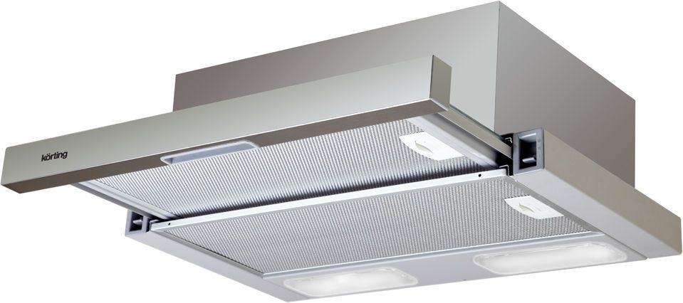 Вытяжка Korting KHP5211X выдвижная, встраивается в навесной шкафчик отвод / циркуляция макс. производительность 550 куб. м/ч ширина для установки 50 см мощность 250 Вт механическое управление тихий двигатель