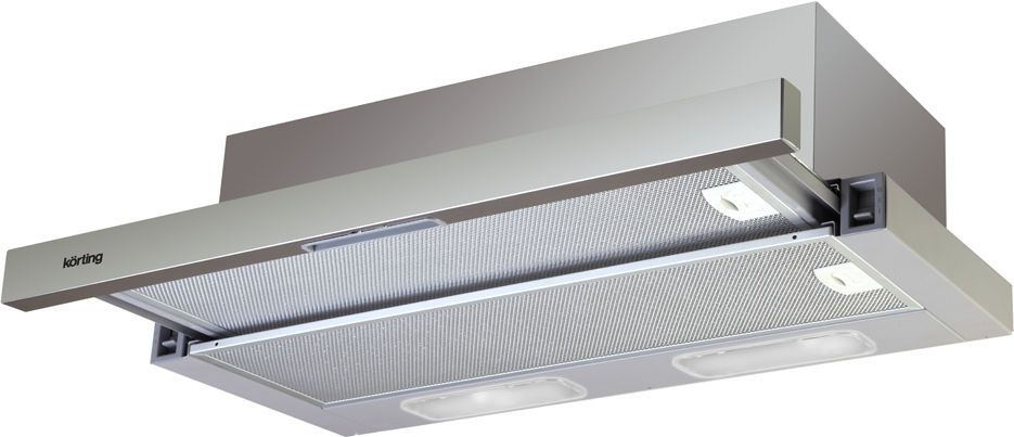 Вытяжка Korting KHP6211X выдвижная, встраивается в навесной шкафчик отвод / циркуляция макс. производительность 550 куб. м/ч ширина для установки 60 см мощность 250 Вт механическое управление тихий двигатель