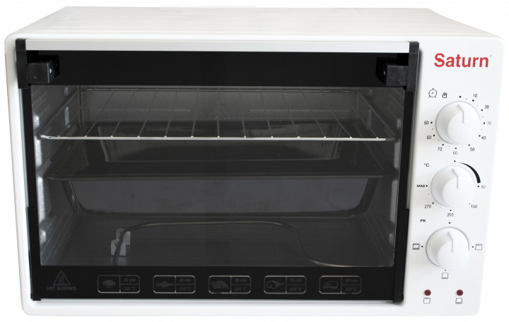 Электропечь Saturn ST-EC3401 Объём камеры: 34 л Количество режимов приготовления: 3 Автоотключение: Есть Габариты (ВхШхГ): 32 x 50 x 32 см Вес: 8.5 кг Цвет: Белый Тип управления: Механическое
